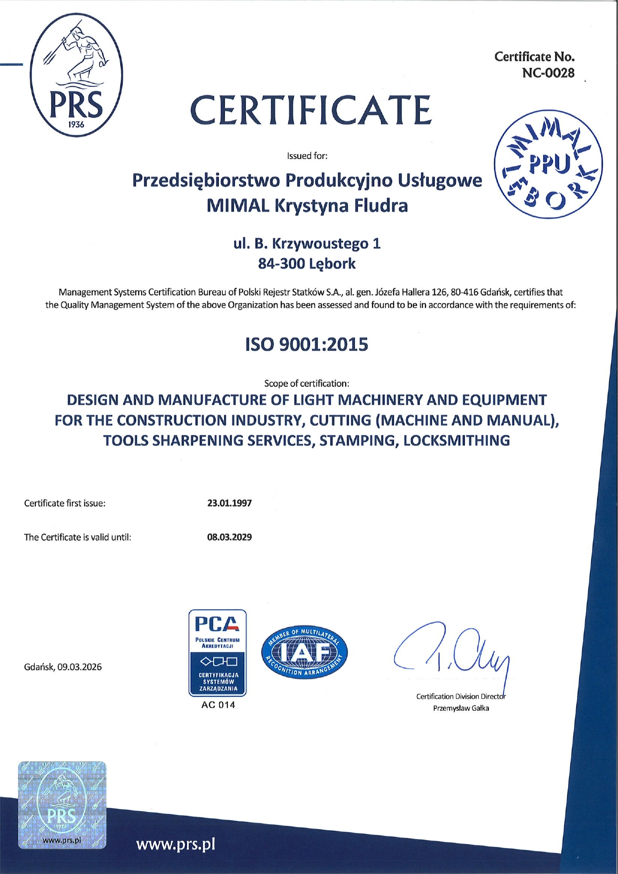 PPU MIMAL designs and manufactures light construction machines and professional paving equipment and tools. All these products are based on proprietary engineering carried out by the MIMAL Design Office and come complete with all marketing-essential approvals, CE safety certificates and EC declarations of conformity. We sell our products via a large chain of Authorized Resellers and directly from the Manufacturing Plant at the corporate headquarters. We are partners to dozens of distributors in Poland, Germany, Latvia, the Czech Republic, Ukraine, Estonia and Sweden.